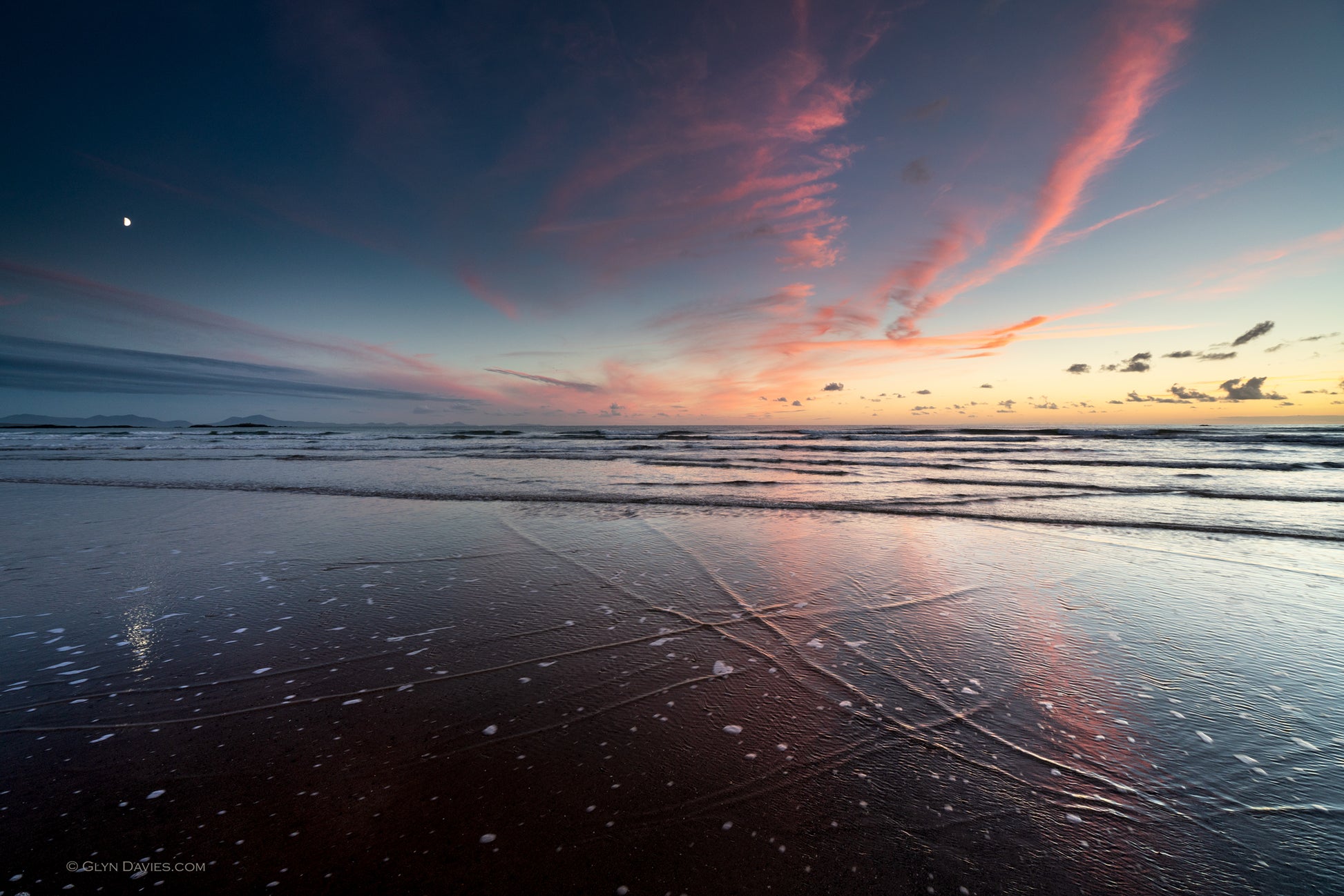 The shift of colours between the moon-cool blues and the pink after-burn of the sunset was simply beautiful, gently mixed by the ripples from small waves. There was a confusion of colours and patterns yet within it all, a minimalist simplicity of form and composition. I was like a kid in a candy shop.