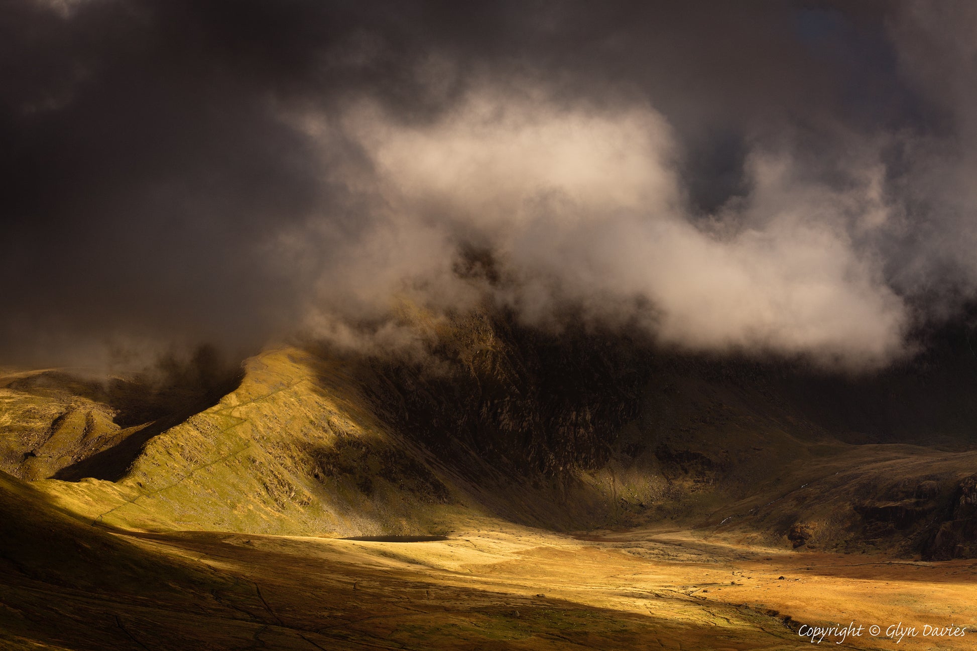 "The huge & imposing massif of Yr Wyddfa (Snowdon) Wales' highest mountain. This was taken following a last minute decision to slog up Mynydd Mawr under inclement weather but it resulted in just the most fantastic hour of weather-watching from it's summit. I was utterly gripped by the continual theatrical change of light being played out across the Snowdonia hills"