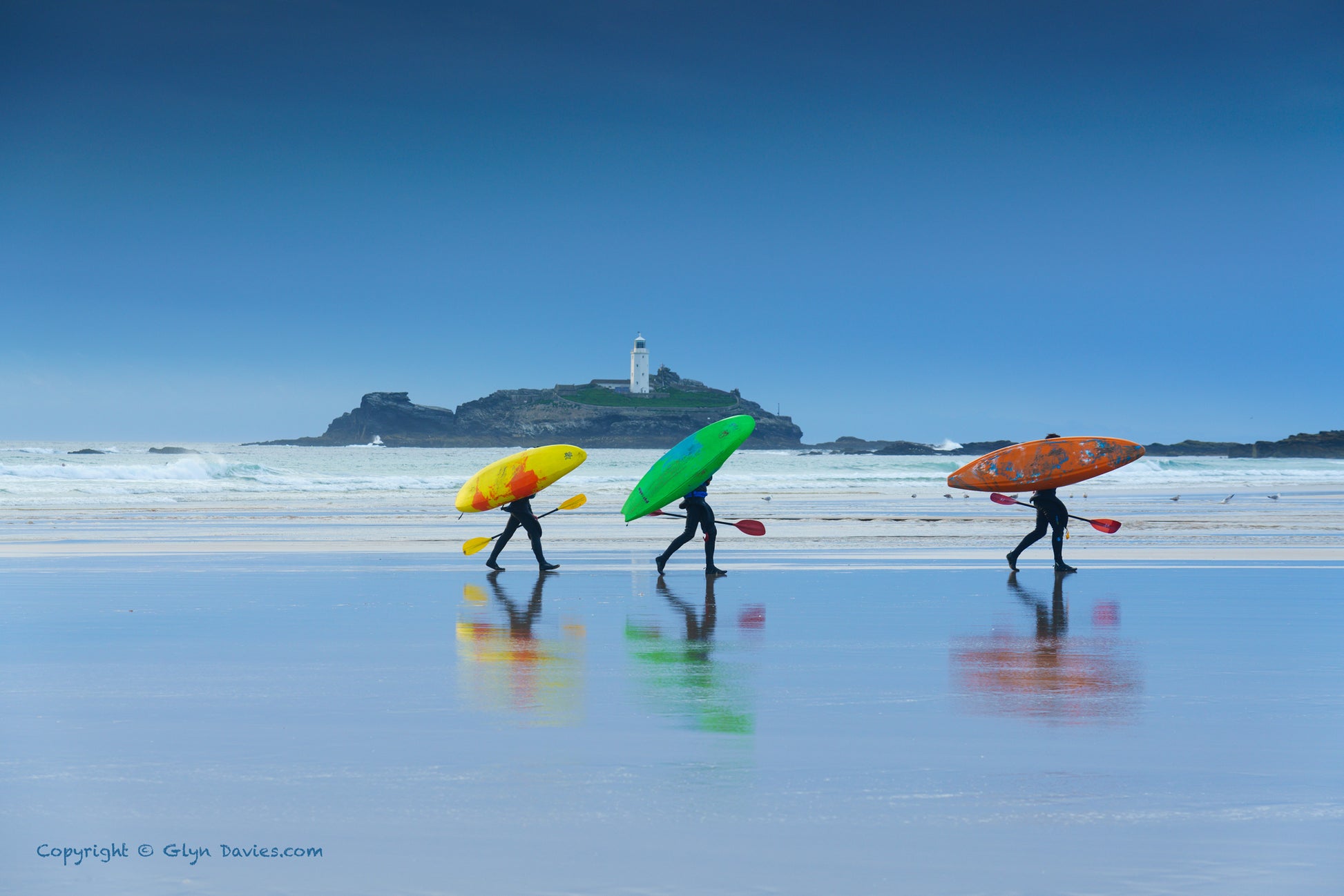 "I was really enjoying being on the huge sandy surf beach of Gwithian Towans and was intrigued by the figures of kayakers and surfers, both in and out of the water. In the background is Godrevy Lighthouse"
