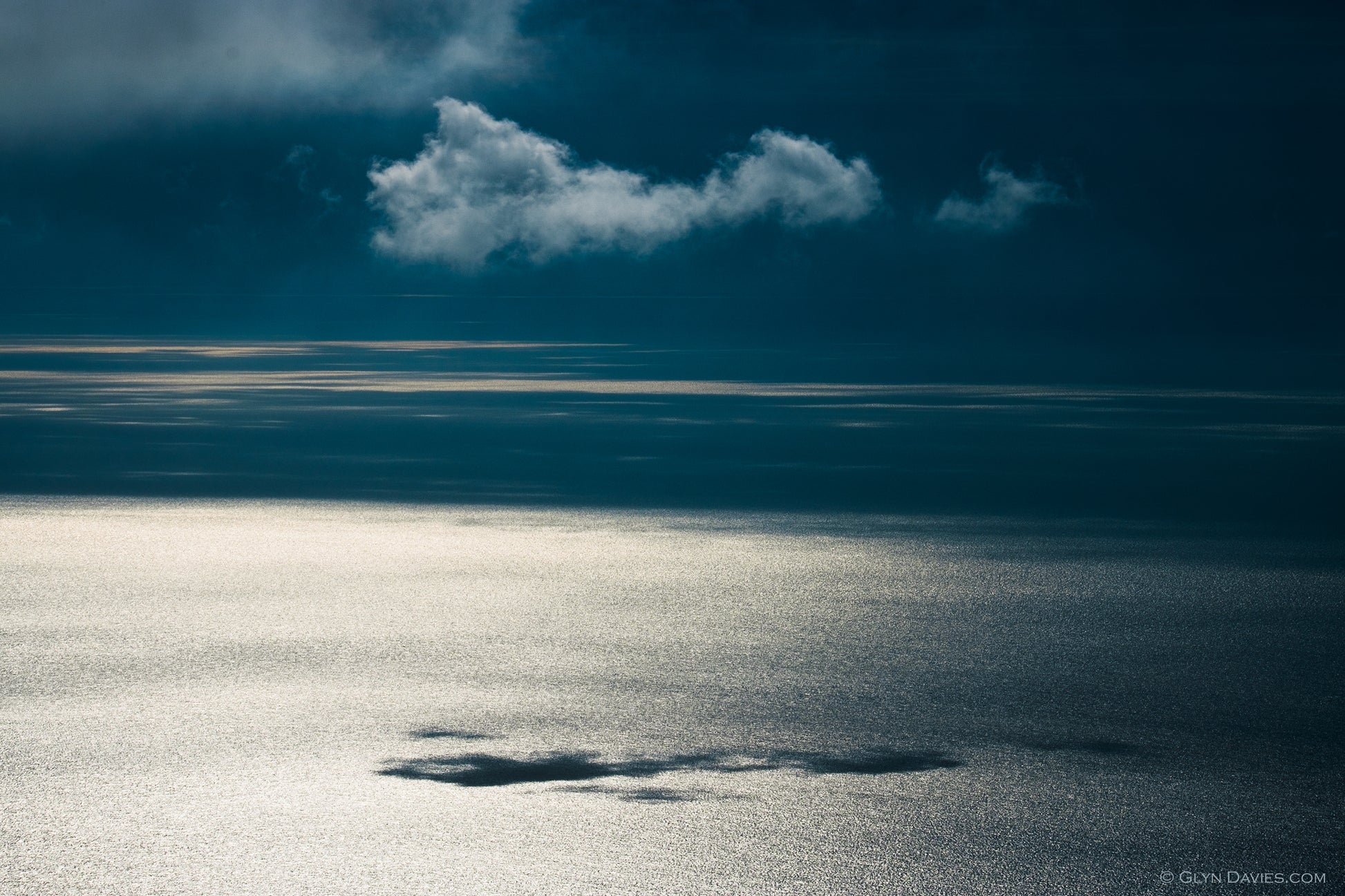 Shot from the mountains of Tre’r Ceiri, higher than the low scudding clouds, sunlight and shadows created a thousand paintings upon the vast stretch of the Irish Sea.