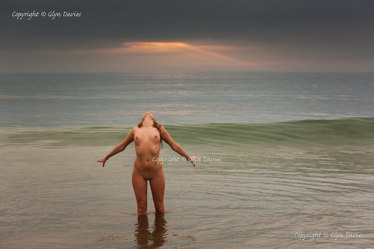 There were a handful of motionless, statue-like figures at the water’s edge, small posts of resistance against the incoming tide, but one woman stood out. She was beautiful; lightly tanned skin; petite but womanly figure; long, wet, bedraggled hair and clearly the most youthful of shoreline sculptures. Her head was tilted backwards so she could neither see behind her, nor me watching. I noticed an almost imperceptible tremble in her limbs as the wave energy approached her. Involuntarily her figure lifted as she rose to her feet whilst the wave wrapped higher around her legs, from calves, to thighs to buttocks - her arms tensed, balancing herself but also in defiance of the coolness of the water engulfing her body. As the wave fizzled on the sandy shoreline her body relaxed once more, before repeating the process. We often fear what we can’t see, but so often the unexpected can bring delight, excitement and the thrill of the new; of being alive and connected to the earth and water"