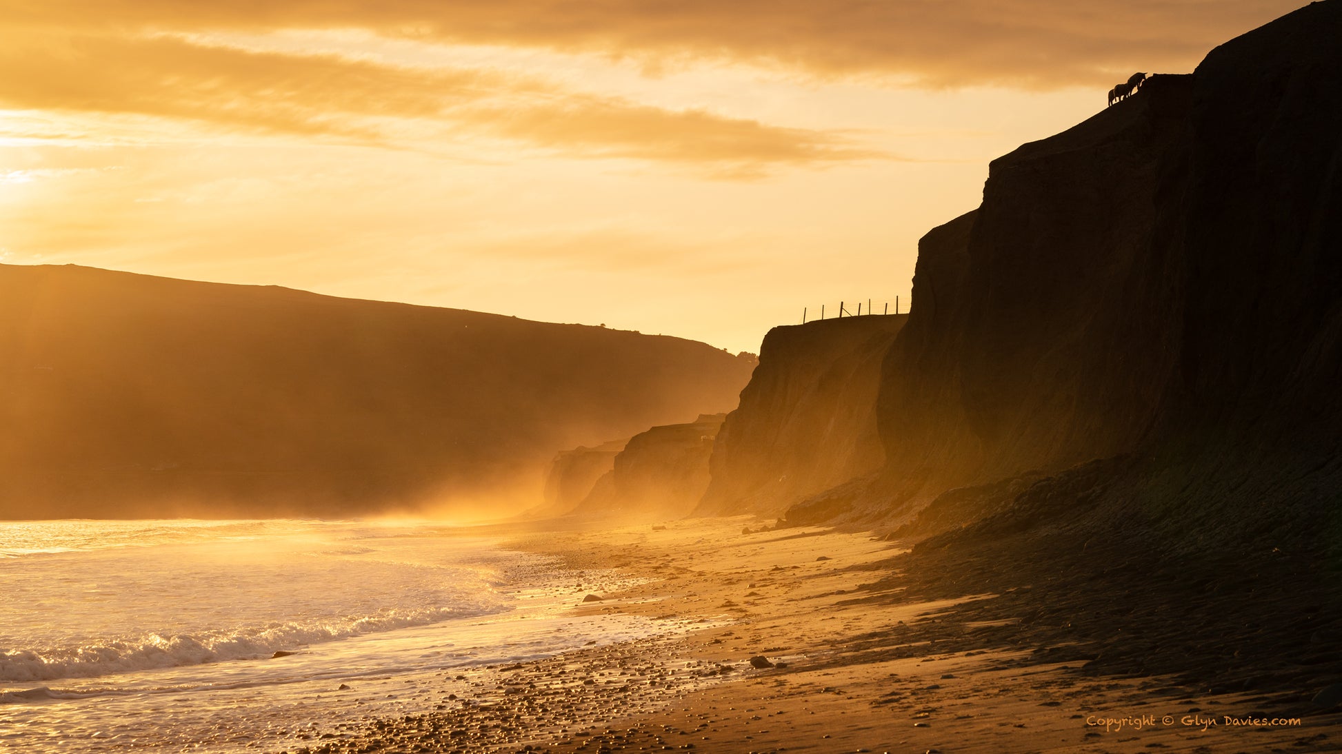 On a glorious evening at the tip of North Wales the low sunshine backlit clouds of spray from the long lines of surf rolling into the bay. Movement caught the corner of my eye and I watched three sheep scramble up to the top of a steep, crumbly cliff - just a wonderful little moment.
