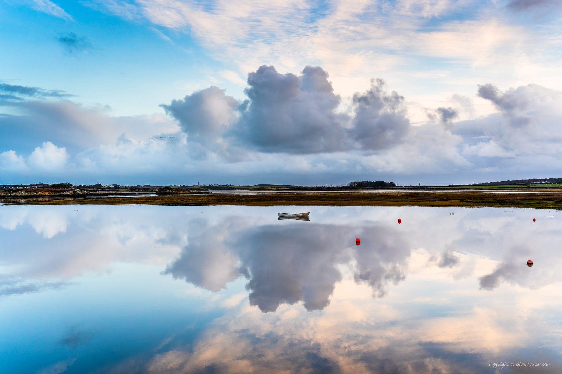 A small flock of birds was the only noticeable movement in this whole scene, where the Cymyran Strait passes through the tiny village of Four Mile Bridge. I've literally never seen it this mirror-calm before, and I was SO awed by it that I screeched to a halt on the far side of the bridge and came back to photograph this amazing view. I got chatting to Janet, a retired surgical nurse who lives just a few hundred feet away from this, as she also stood mesmerised by the view. She said she'd been living there for many years and like me, had never seen it just SO perfectly calm, where usually the movement of the tide at least creates some currents and ripples.