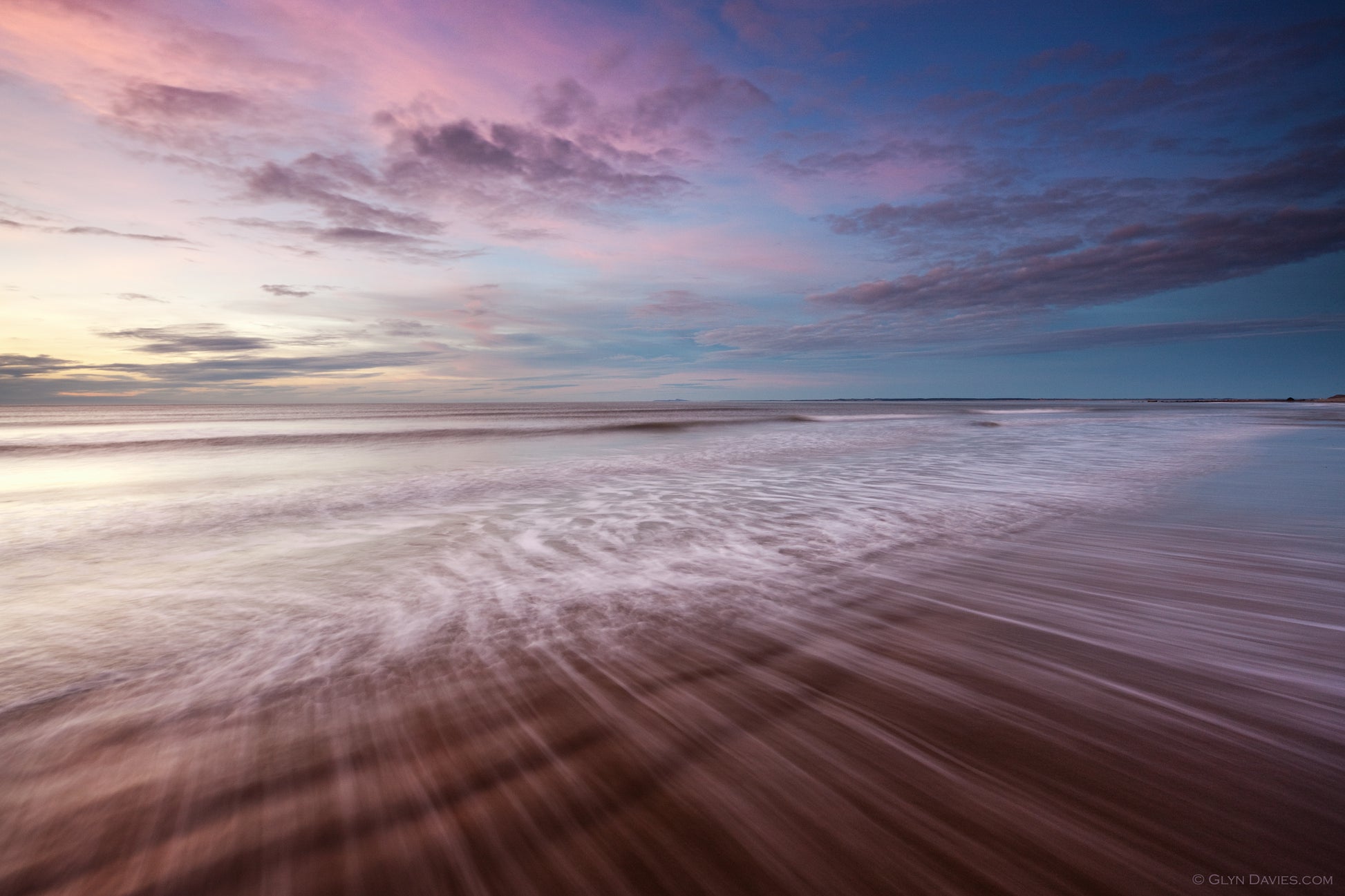 "Clouds built over the horizon but in the last of the sun they looked beautifully dramatic, textural and crisp. In fact there was so much texture in front of me that it was hard to find the minimalist simplicity I've been drawn to recently. For maybe ten minutes the world turned pink, the hue washed over the sky and infused in the gentle waves, even the wet sand threw it back skyward. I stood in the sea, in my walking boots, wave after wave lapping at my shins but amazingly my feet stayed as warm as the sunset colours. I studied the waves smoothing and cleansing the beach before me, back to perfection.