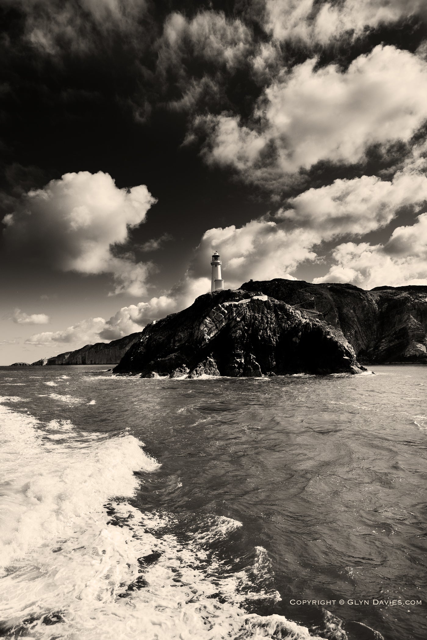South Stack lighthouse on Holy Island, Anglesey, as seen from the flying bridge of the Holyhead Lifeboat, RNLB Christopher Pearce. I had to react quickly to changing compositions as this powerful vessel blasted us around the imposing cliffs of Ynys Lawd.
