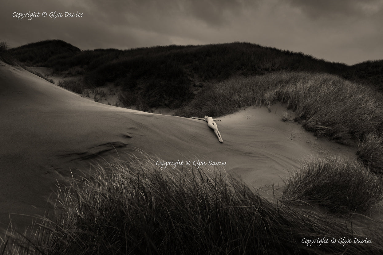 “The wind blew hard across the rolling landscape but the winter rain drove harder, stabbing the skin of the earth and the flesh of the figure. The sky grew dark and the hills blackened, but a gentle beam of light continued to illuminate the woman, outstretched on the dune. A firm arm of soft sand pressed into her back, supporting her and the new life now growing inside her, positioning her to face the universe”