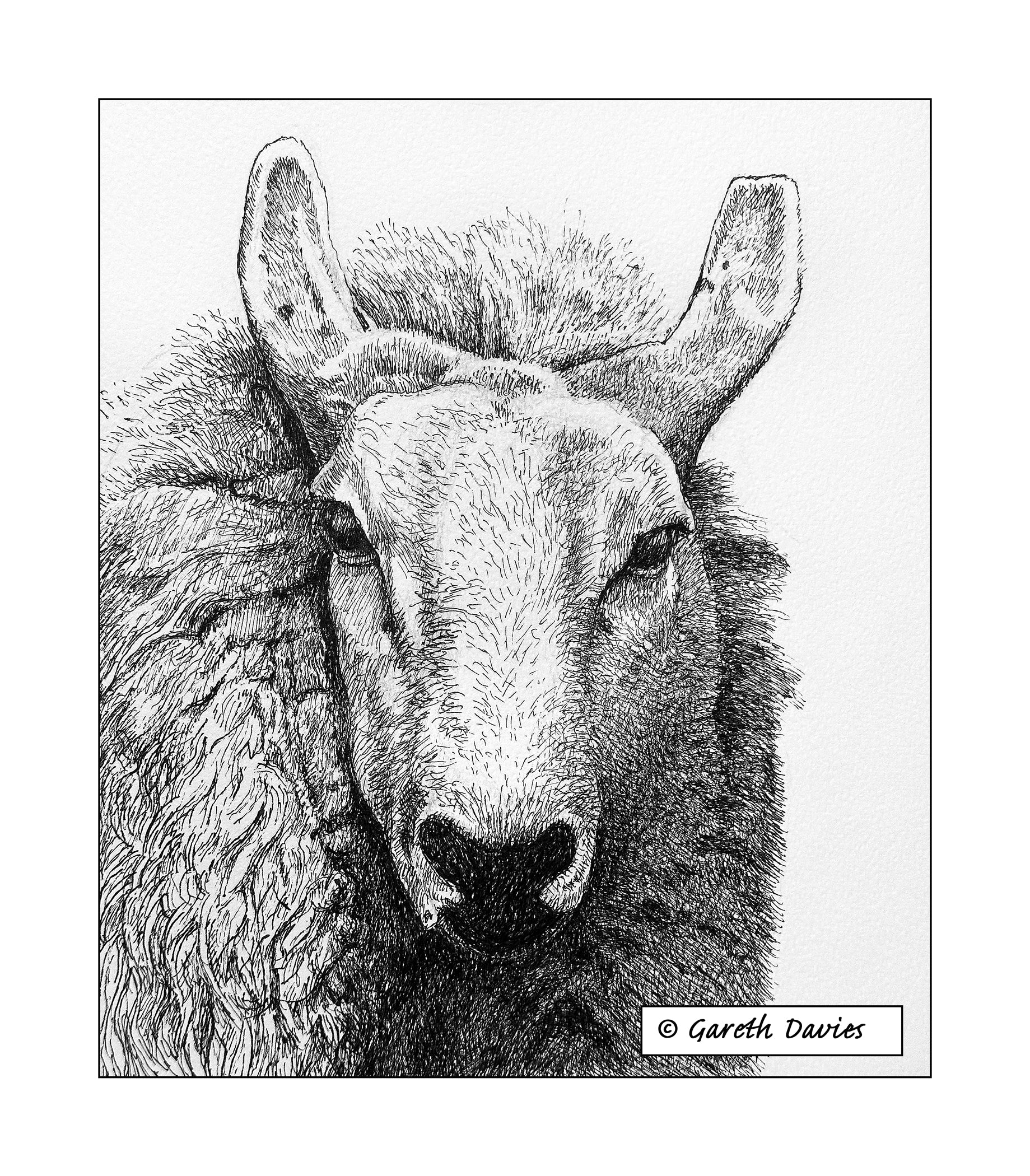Sheep ~ Dafad (No1) is a signed, archival print reproduction of an original pen & ink drawing by Welsh artist, my Dad, Gareth Davies