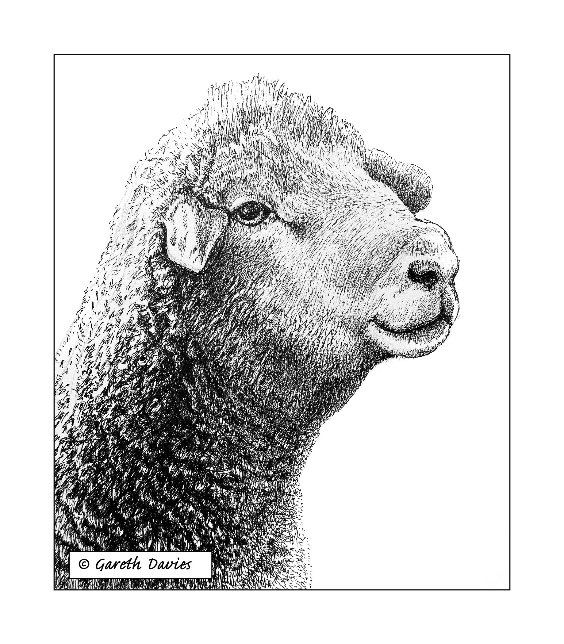 Sheep ~ Dafad (No2) is a signed, archival print reproduction of an original pen & ink drawing by Welsh artist, my Dad, Gareth Davies