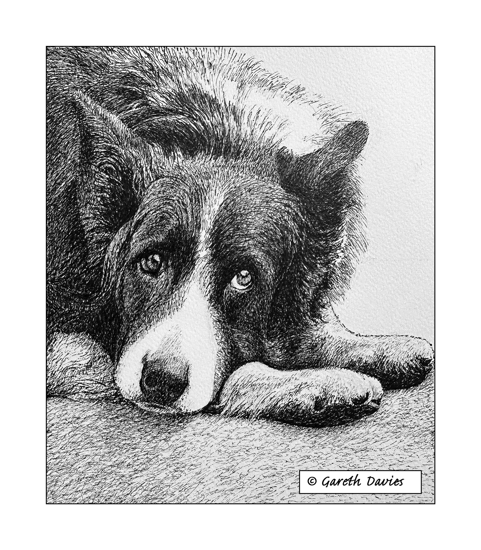 Sheepdog ~ Ci Defaid (No1) is a signed, archival print reproduction of an original pen & ink drawing by Welsh artist, my Dad, Gareth Davies