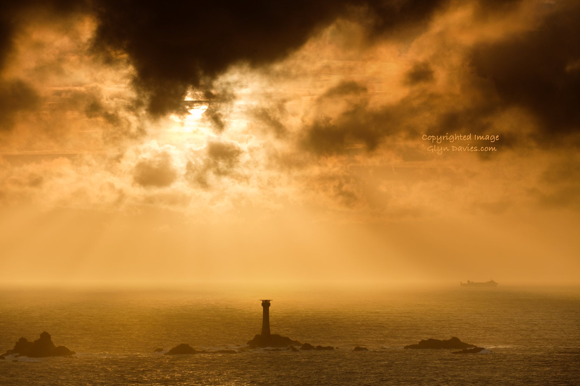 "A small cargo ship passes by Longships Lighthouse just off the coast at Land’s End, SW Cornwall during an amazing and dramatic sunset. No filters, just incredible colour saturated light from the sun burning through layers of cloud and vapour"