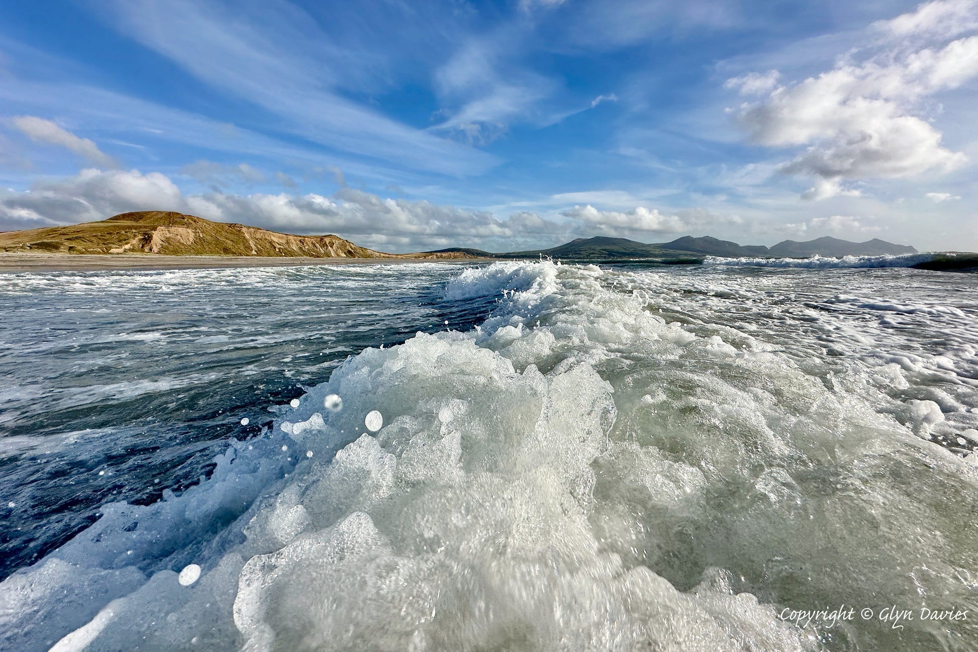 There was a strong lateral rip pushing northwards along the shore, and if you just floated, you’d move quickly with it, but I was endlessly putting my feet down and wading back against the current before diving under again. It’s pure exhilaration isn’t it, made even more uplifting when the sun is in your face as spray breaks over you – it’s all so beautiful.
