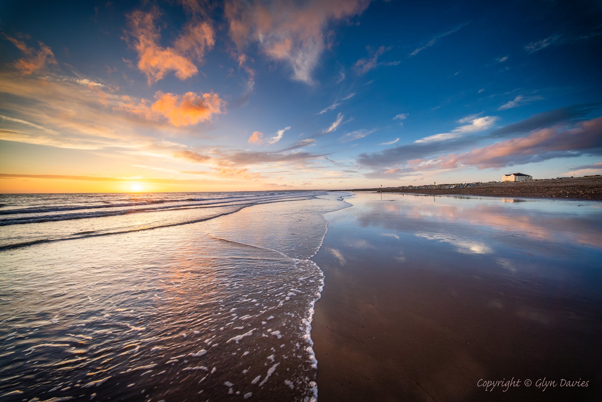 The beach is so vast that it's easy to feel vulnerable in bad weather, so the house is a beacon of security, even if falsely so. Dinas Dinlle is several kms long with boulders and glacial deposits at one end, and sand and shingle at the other. At low tide the sand seems to go on forever.