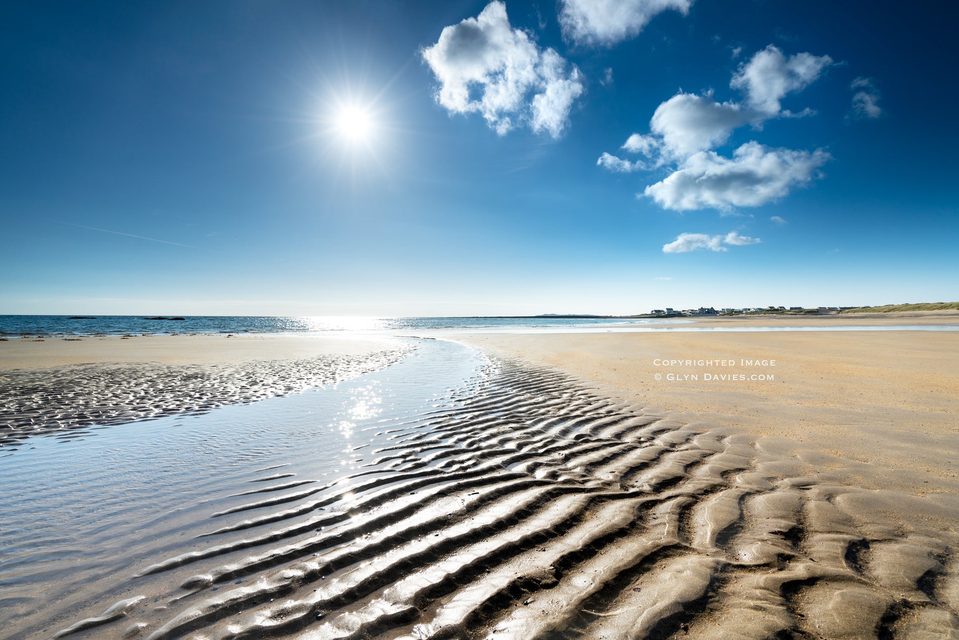 "Even though a town sits in the distance, the freshness and joyous escape of being on this expansive beach was incredibly uplifting. The crystal blue skies, the sunshine bouncing off the sparking sand pool, the triangle of deep ripples and the curve of the stream - they all came together to create a perfect moment, a great escape"
