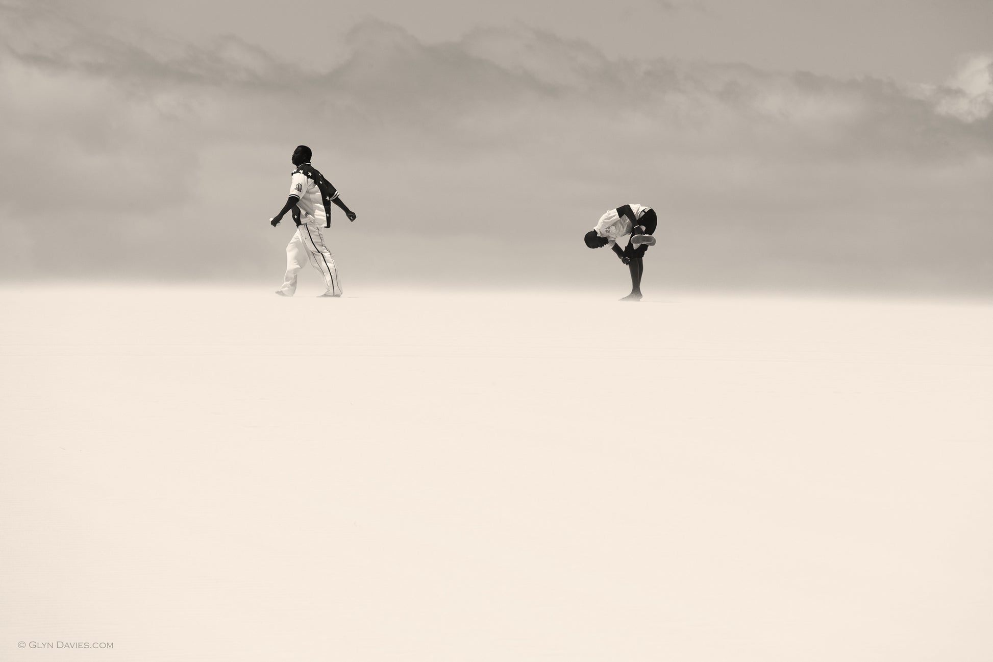 "Just a simple observation of two people walking along the summit of a huge wind-blown sand-dune in Fuerteventura. The fashion seemed so incongruous to the situation, and I loved the human relationship in this vast space, between the second man bending forward as his companion strode ahead oblivious"