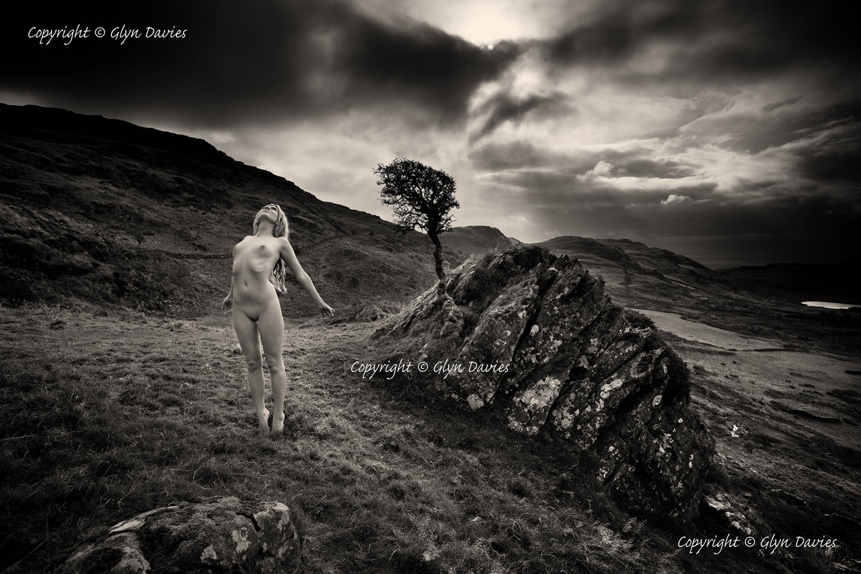 Up here on a hillside however, a bright light appeared, slowly burning through the heavy clouds and she found herself nude. She felt the short grass beneath her feet and gentle sunshine on her back as she stretched her naked body once more, revealing herself completely to the earth, the sky and the elements. She stood on tiptoes, aching to be lifted upwards. She wanted to show the world that she was still alive, still innocent, even in her naked form. There was a discernible aura around this woman and I sensed her natural existence had just been spiritually validated.