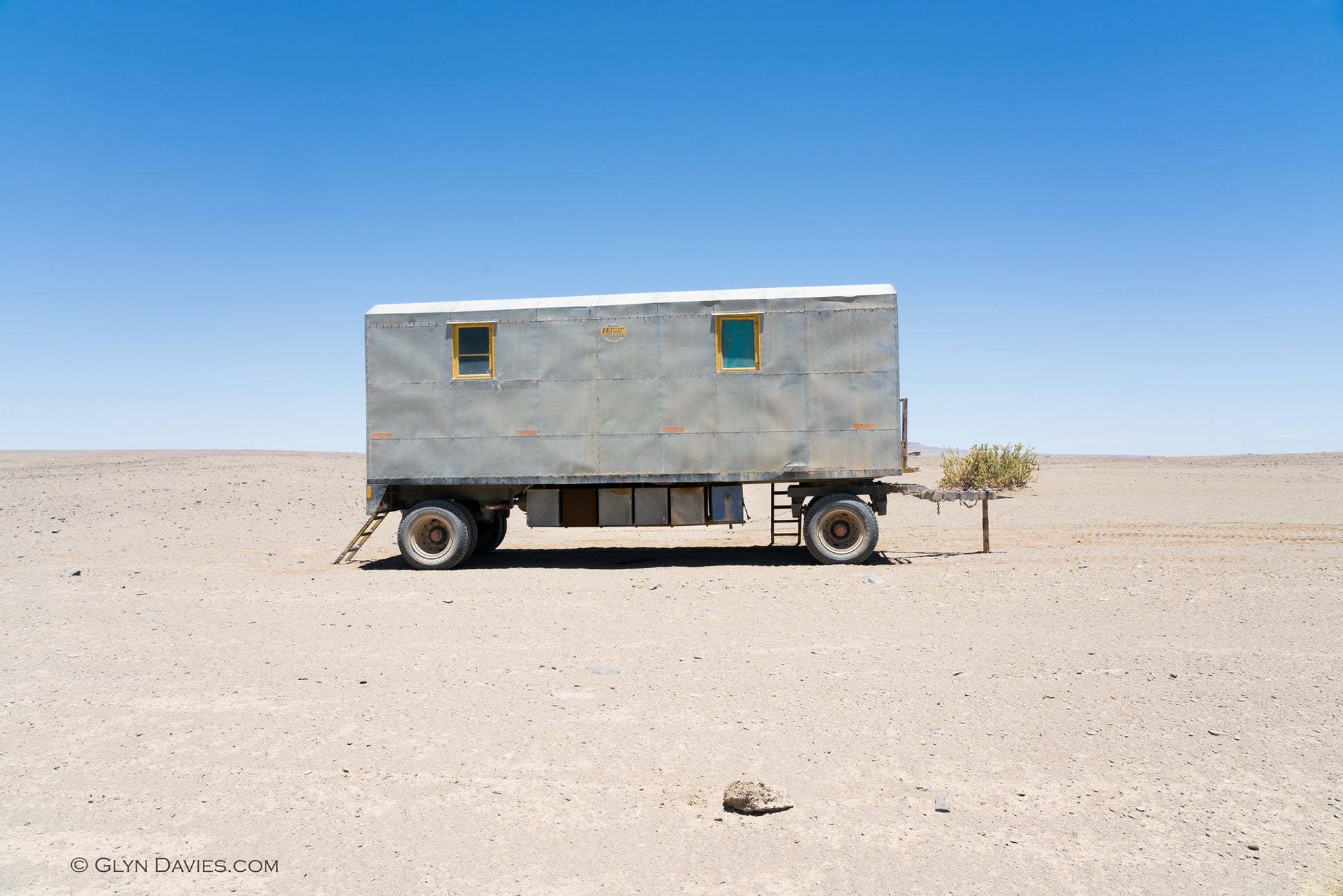 "In the middle of nowhere in a vast and inhospitable landscape, we came across an elderly looking man removing large stones from the dirt road. It was certain death in that climate but about a mile further on, we came across this mobile shelter, a workman’s refuge.