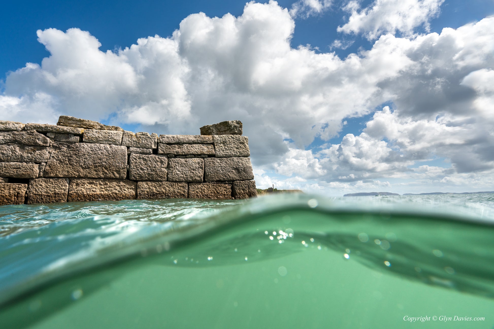 This is one of the historical jetties belonging to the nearby Penmon limestone quarries and would have seen many ships in its heyday carrying away the limestone cargo. I was using an underwater housing so that I could photograph above and below sea level in the same frame.